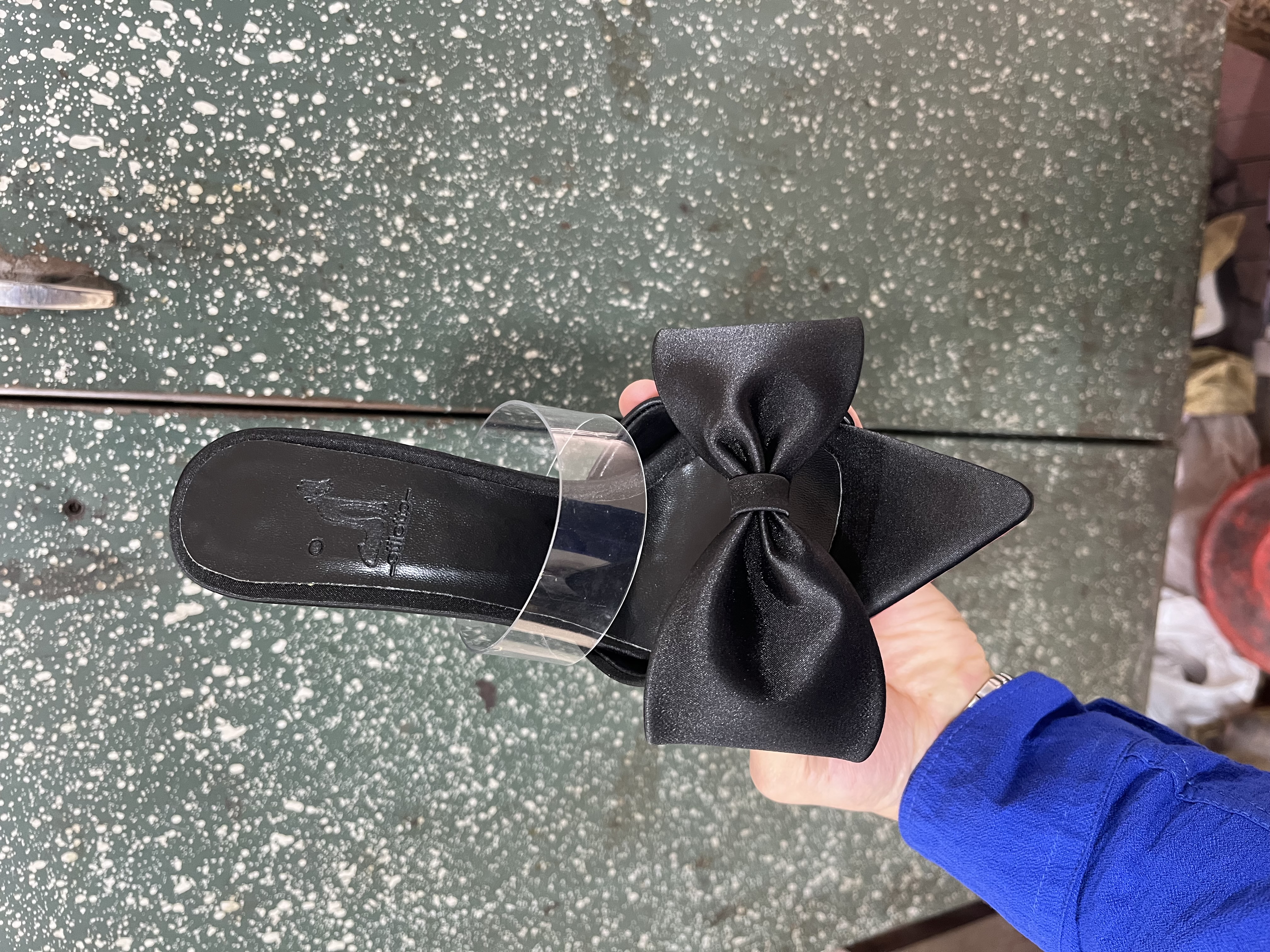 کفش مشکی ساتن جلو صلاییو پاشنه طلایی